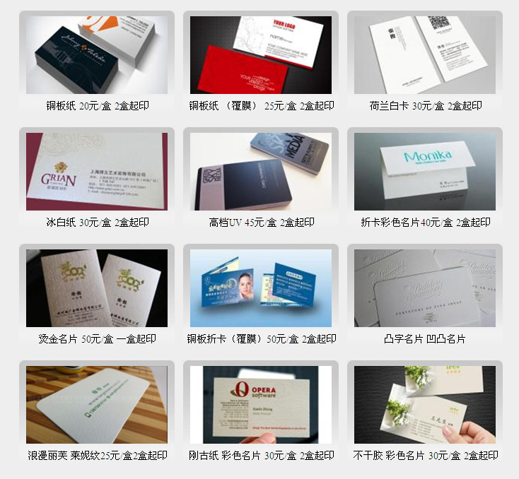 280克荷蘭白卡/萊尼紋名片印刷價(jià)格表