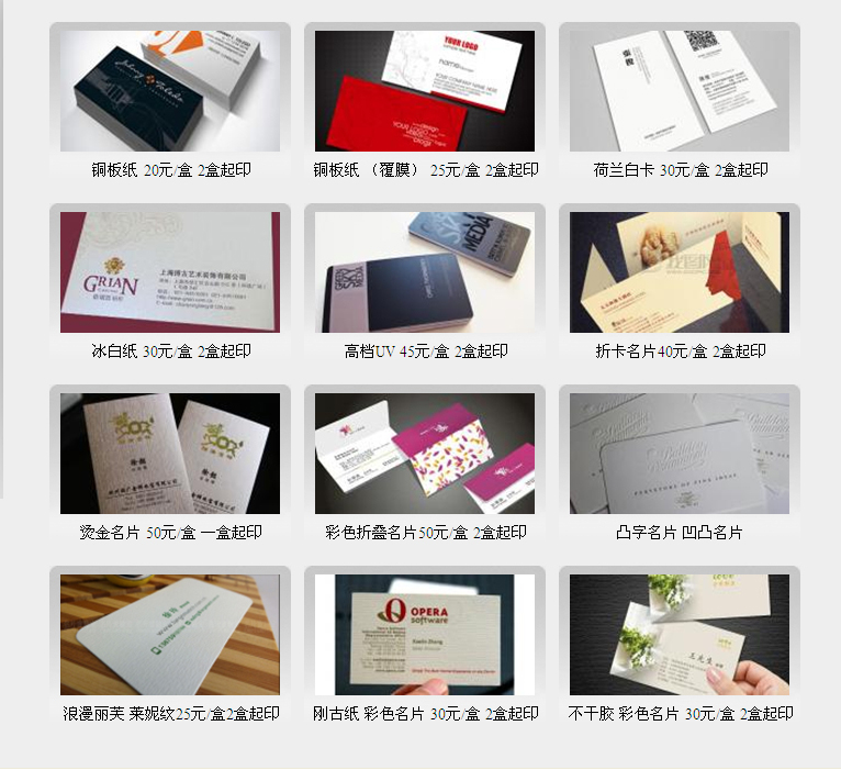 名片制作設(shè)計(jì)印刷價(jià)格表